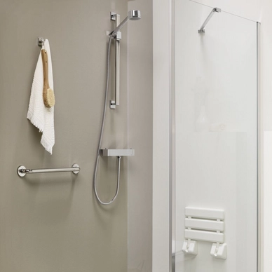 Ce siège rabattable de la marque Tiger vient de la série Libra. Ce siège a des dimensions de 32×32 cm, ce qui le rend très agréable. Le siège est recouvert d’une couche anti-dérapante, ainsi vous ne risquerez pas de déraper sous la douche. Ce siège de douche est livré avec tout ce dont vous avez besoin pour le monter, et le siège peut transporter un poids jusqu’à 100 kg.